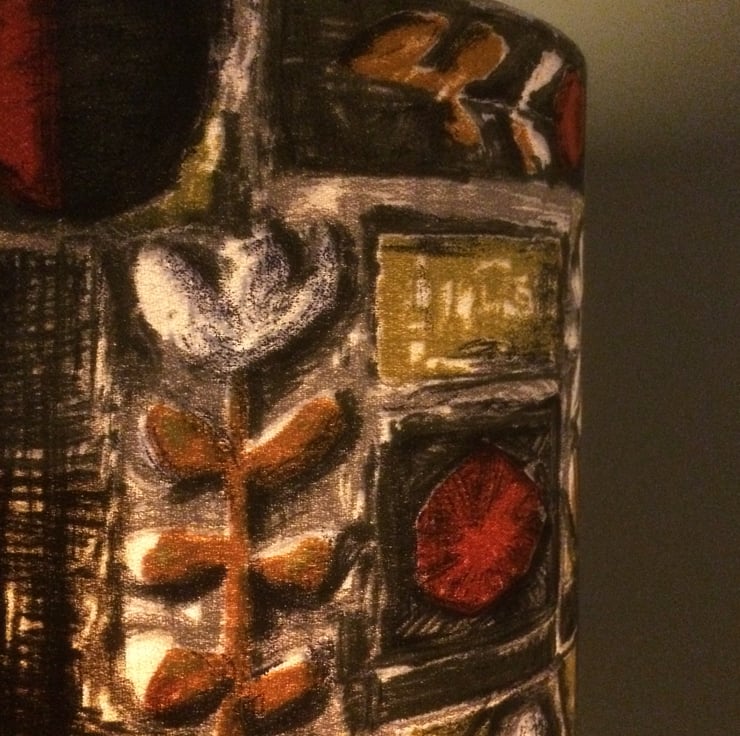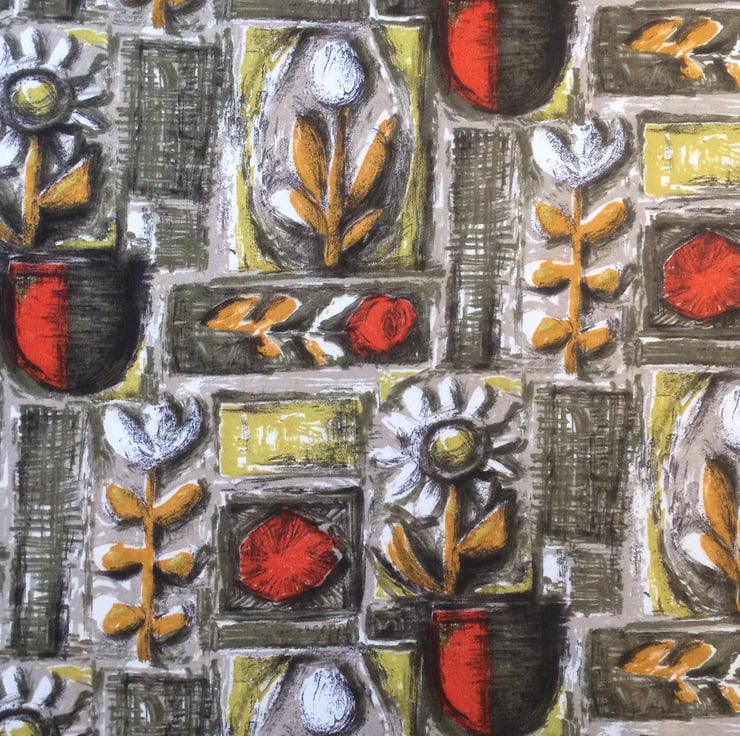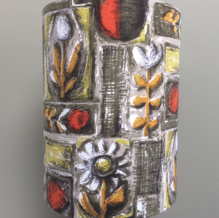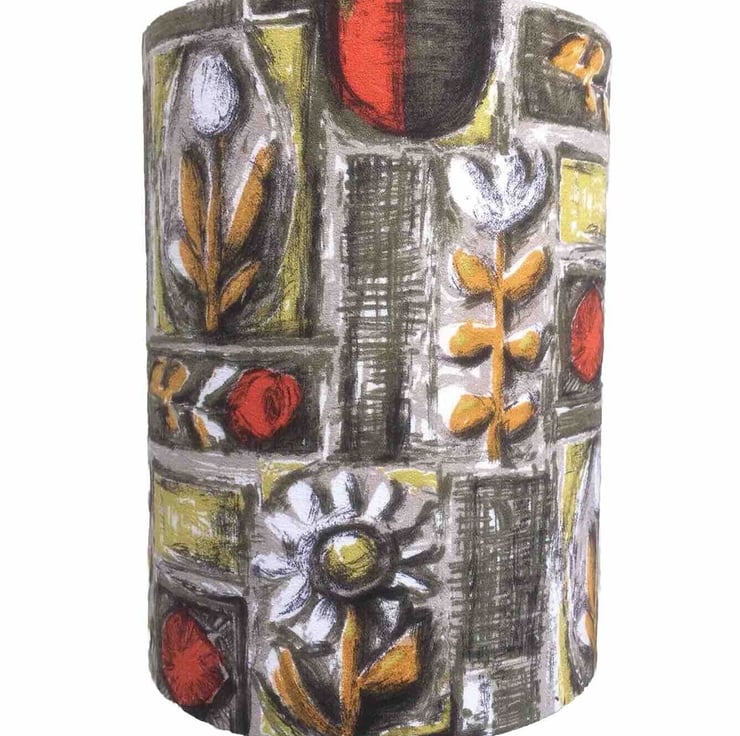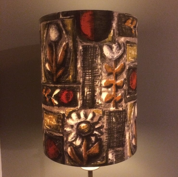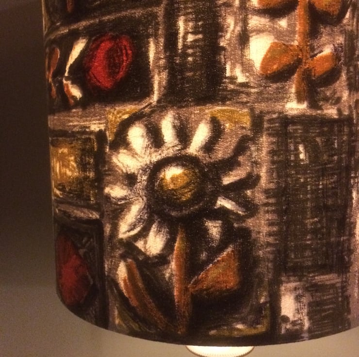 50s Retro Daisy Rose Flower Pots Barkcloth Vintage Fabric Lampshade option - unusual fabric for a lampshade in a modern, vintage or retro home. This one would be fabulous in a 50s themed room and is in great condition. VERY dramatic when lit ! see pictures