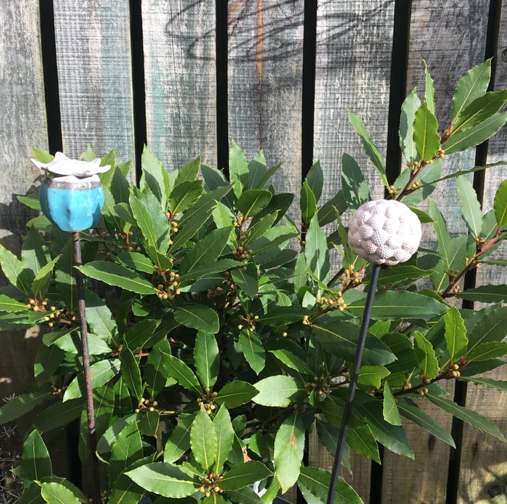 My Ceramic garden pod stakes are handmade as a unique, bespoke design. No two are alike and add a splash of colour to your garden no matter what time of year it is. This one is loosely based on a seed pod.