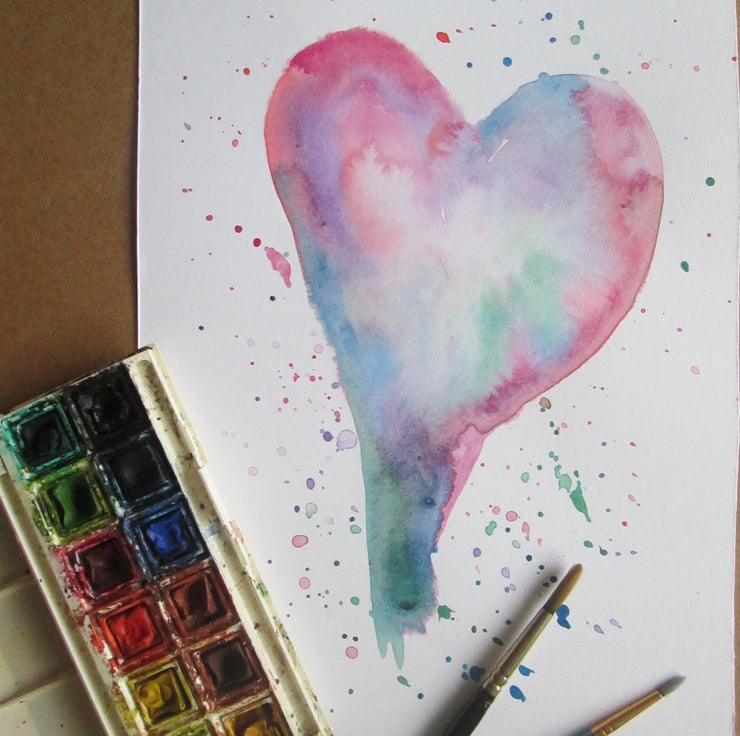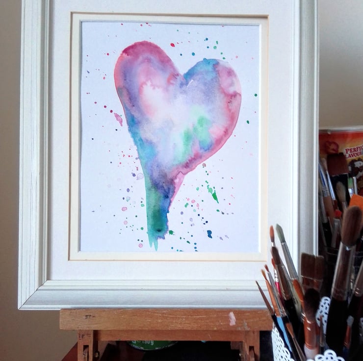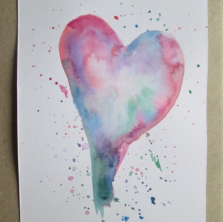 A colourful original watercolour painting on quality white paper. Love and friendship token of a heart painting.
