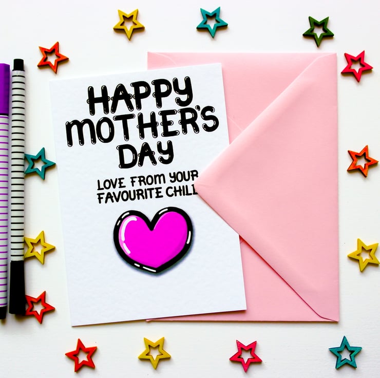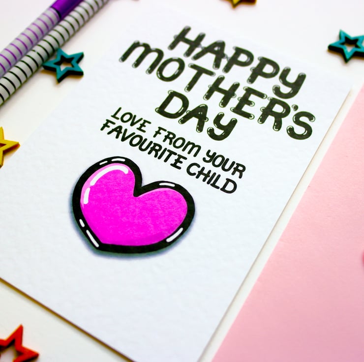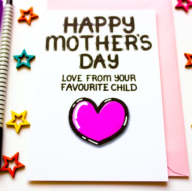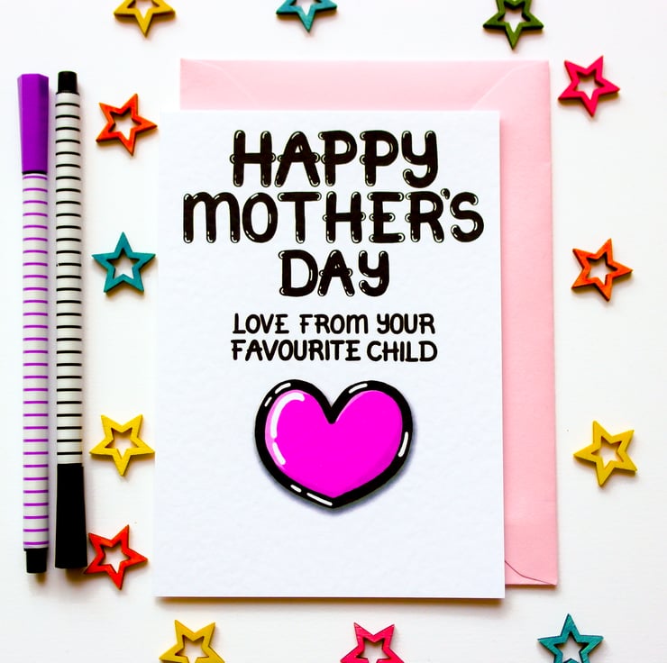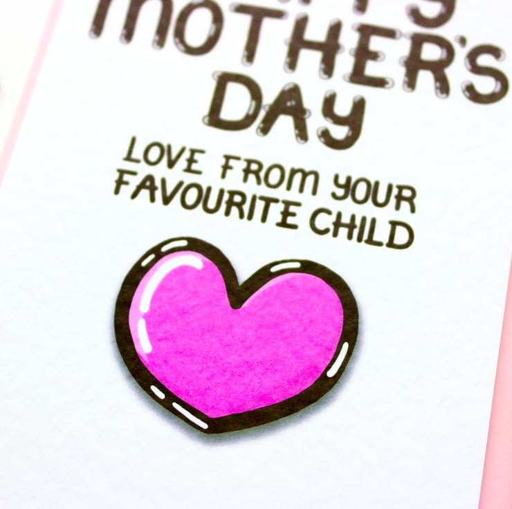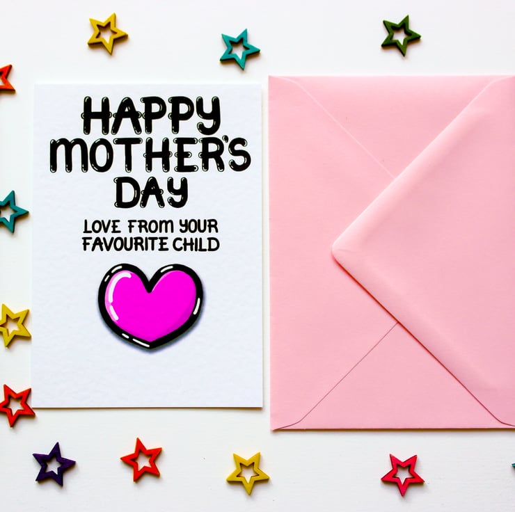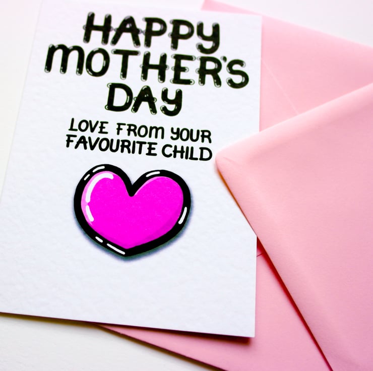 Greeting on front:HAPPY MOTHER'S DAY LOVE FROM YOUR FAVOURITE CHILD
