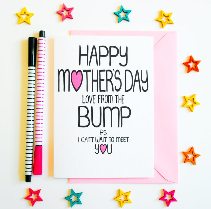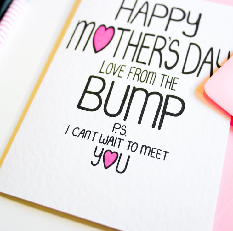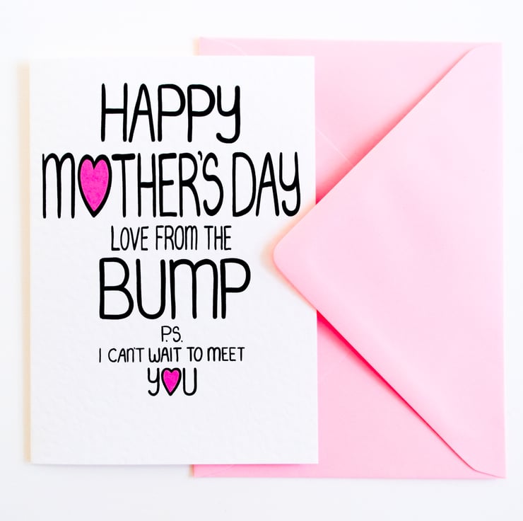 Greeting on front:HAPPY MOTHER'S DAY LOVE FROM THE BUMP P.S. I CAN'T WAIT TO MEET YOU