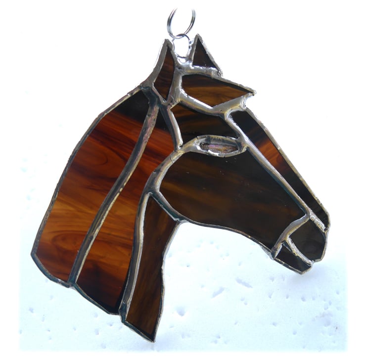 The suncatcher hangs from a little chain which is securely attached to the top of horse. It is approximately 10cm high and wide.