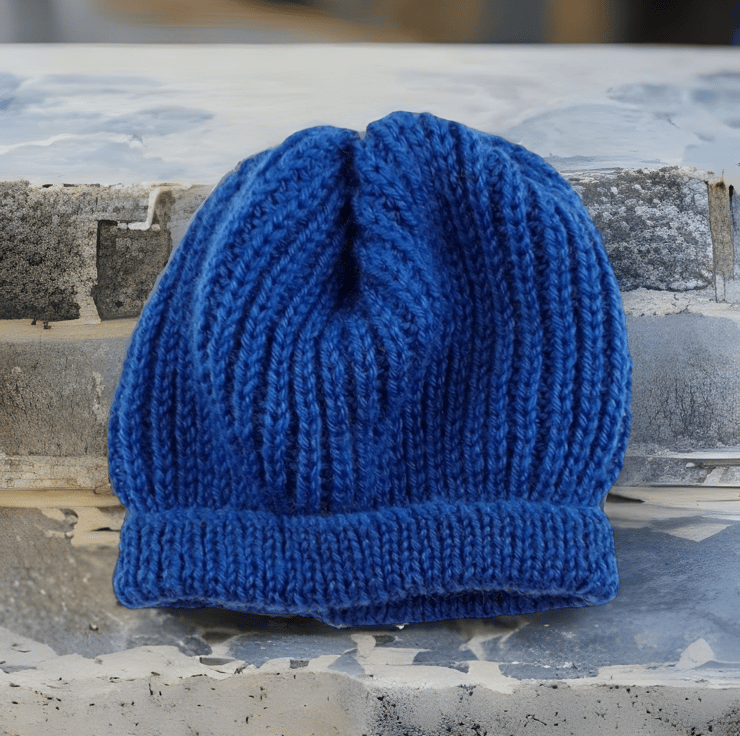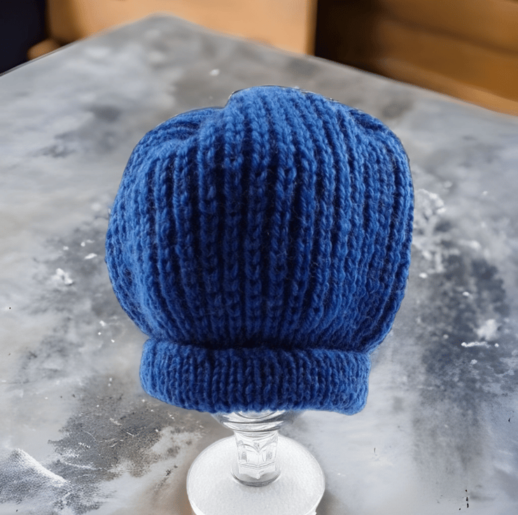 Hand-Knitted Baby Ribbed Hat in Blue, a delightful blend of warmth and style for your little one's winter wardrobe.