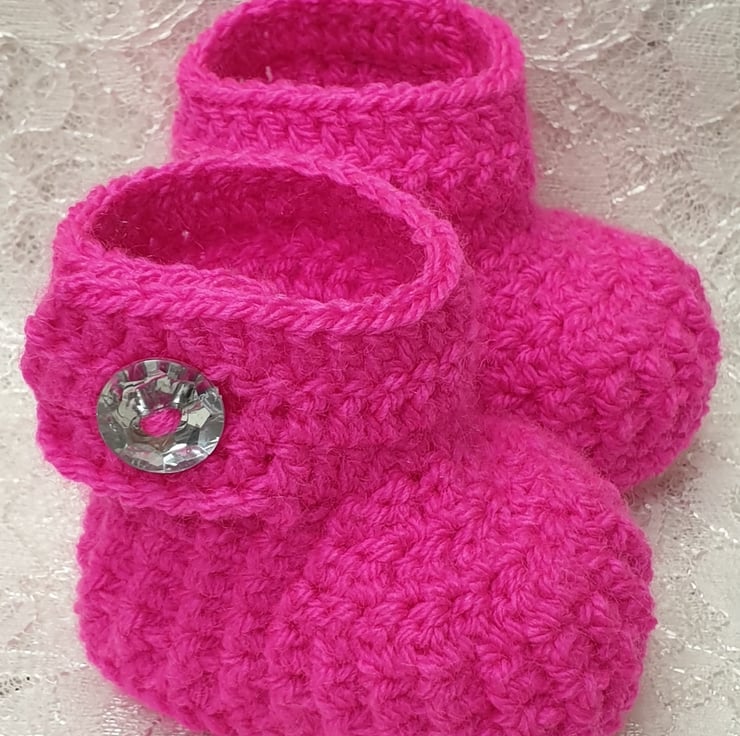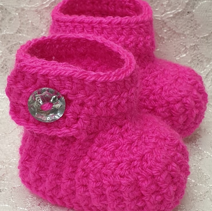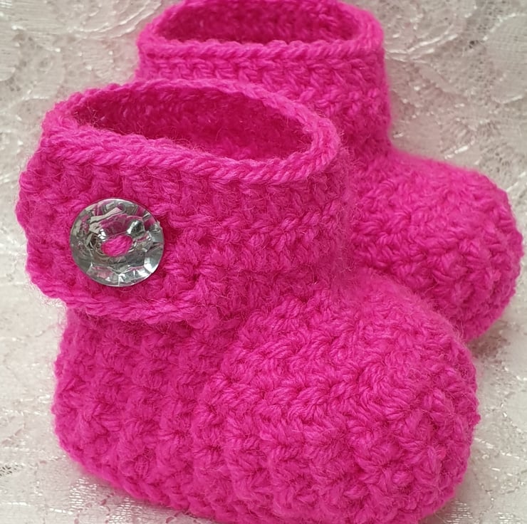 Crochet newborn baby booties, hot pink baby shoes, handmade baby boots