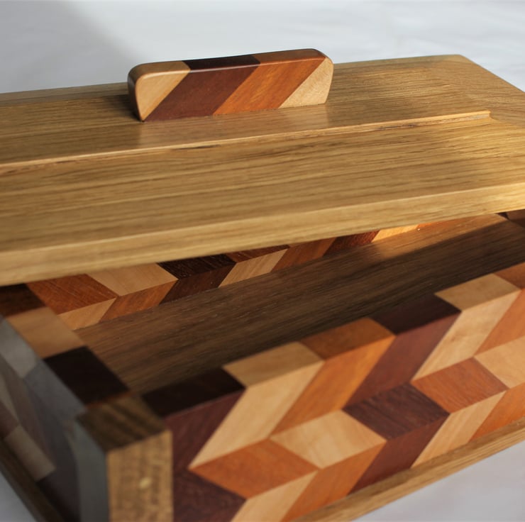 Wooden Trinket Box with a Zig Zag pattern effect with the timber.