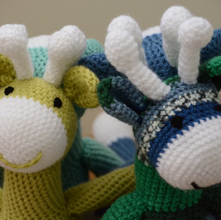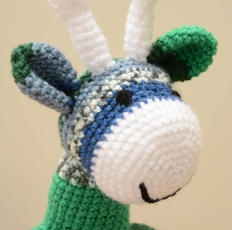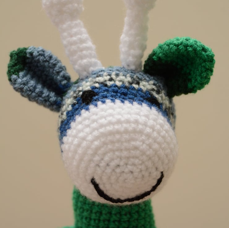 Hand crocheted Giraffe toy suitable from birth. Perfect baby shower gift. Made from acrylic yarn and polyester stuffing. Can be washed at 30 degrees. Toys are UKCA marked.