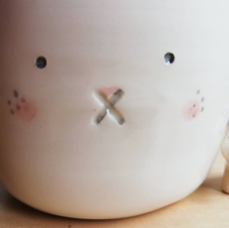 I enjoy making these little character pots, each little bunny face although similar because they are made by hand they have their own personality. The little cotton tail is an extra little detail.