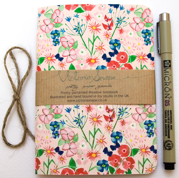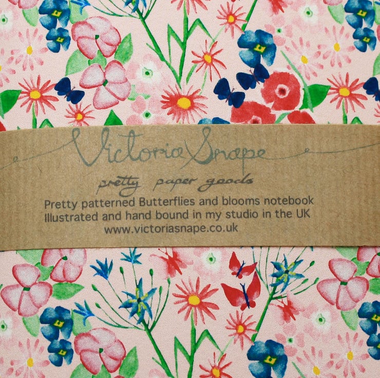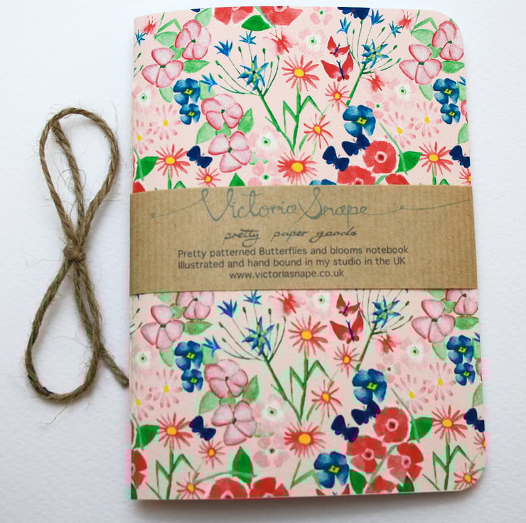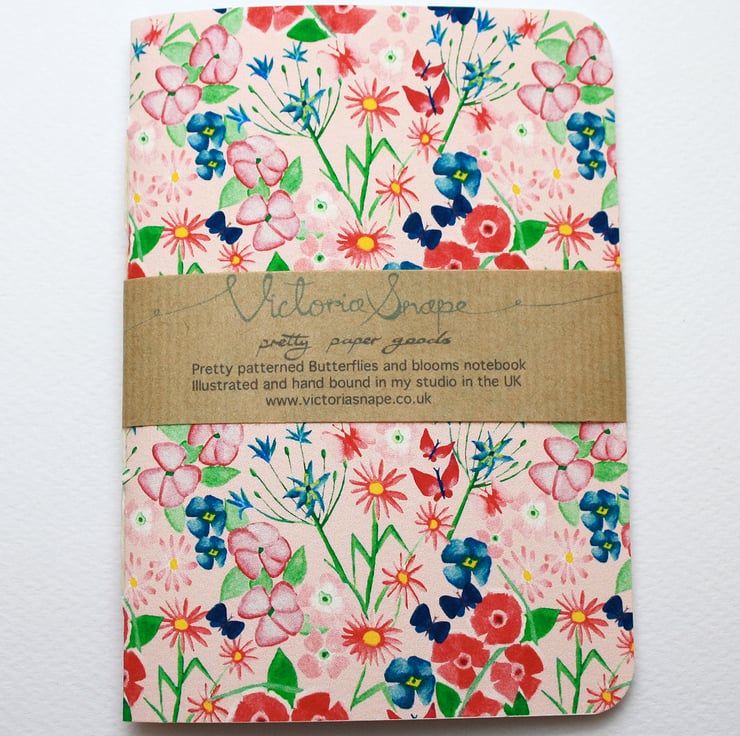 Pretty patterned small notebook featuring my original watercolour butterflies and blooms pattern.