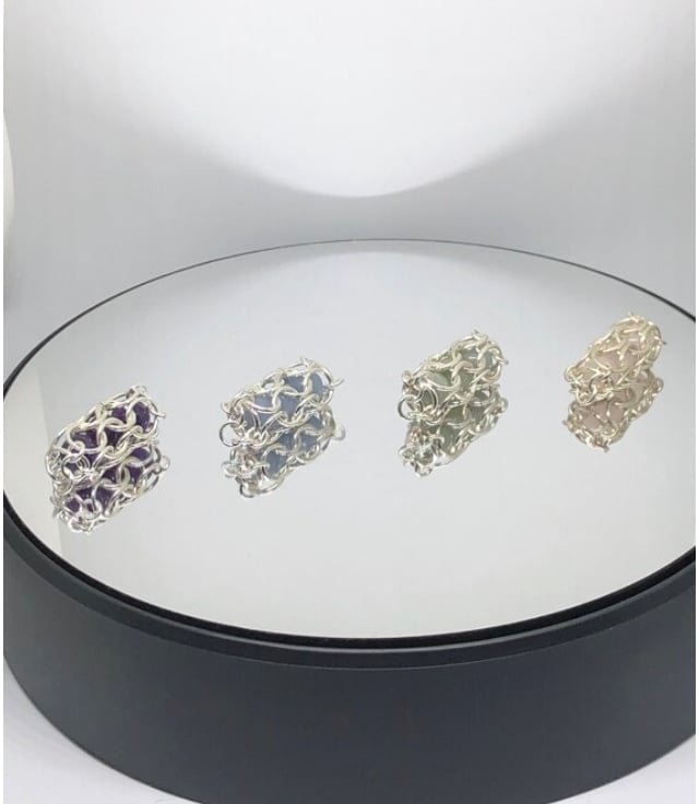 Chainmaille is an ancient art form dating back to medieval days, there are thousands of different chainmaille patterns that I'm incorporating into my designs.