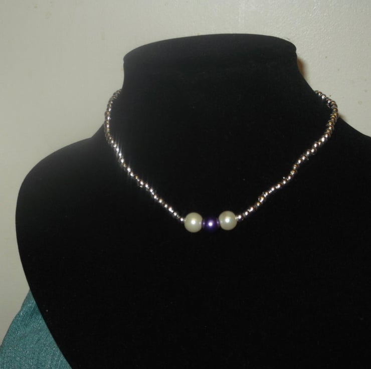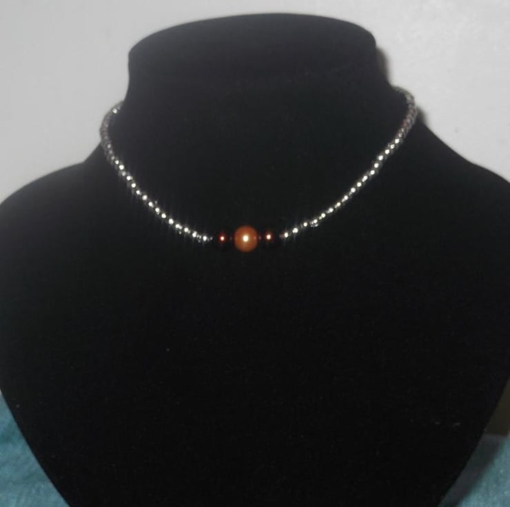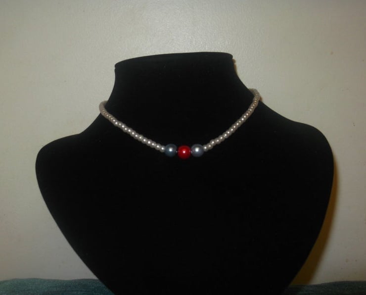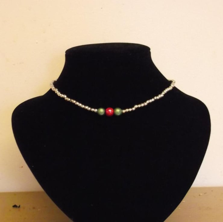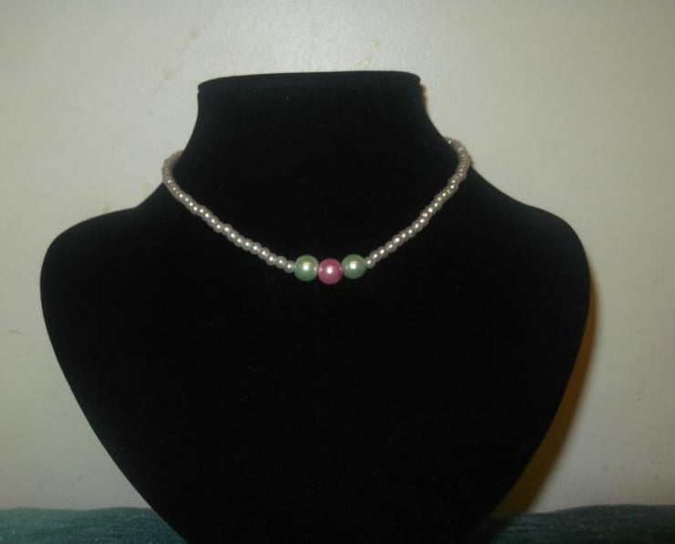 Choker contains 8mm beads and plastic pearls. Sizes and colours may vary.