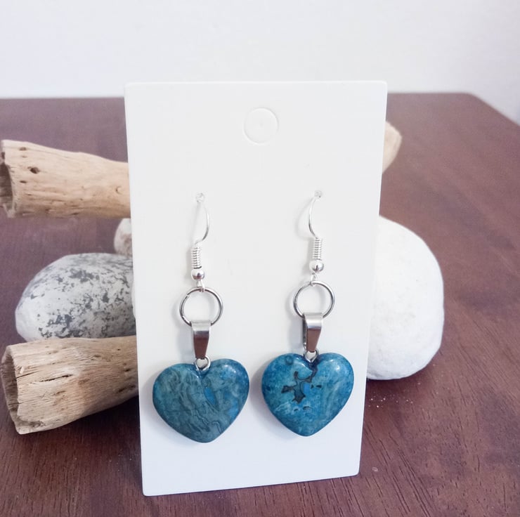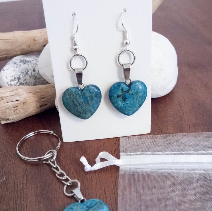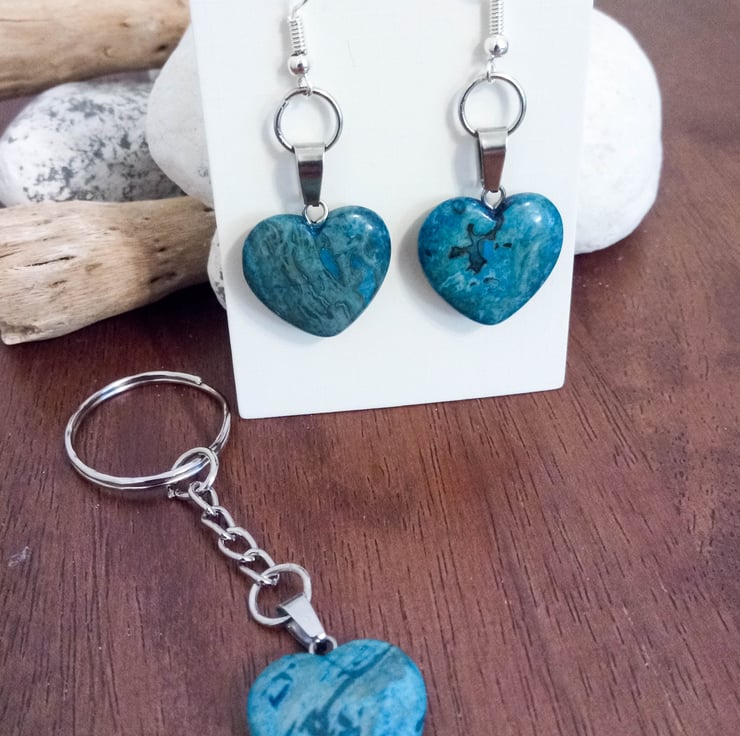 A lovely heart earrings and keyring set made of blue crazy lace agate. This set would make a perfect gift for birthdays, anniversaries and mother's day.