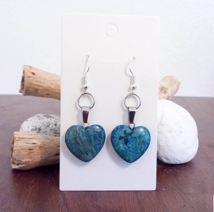 The blue crazy lace agate hearts are approximately 22x20x6mm.