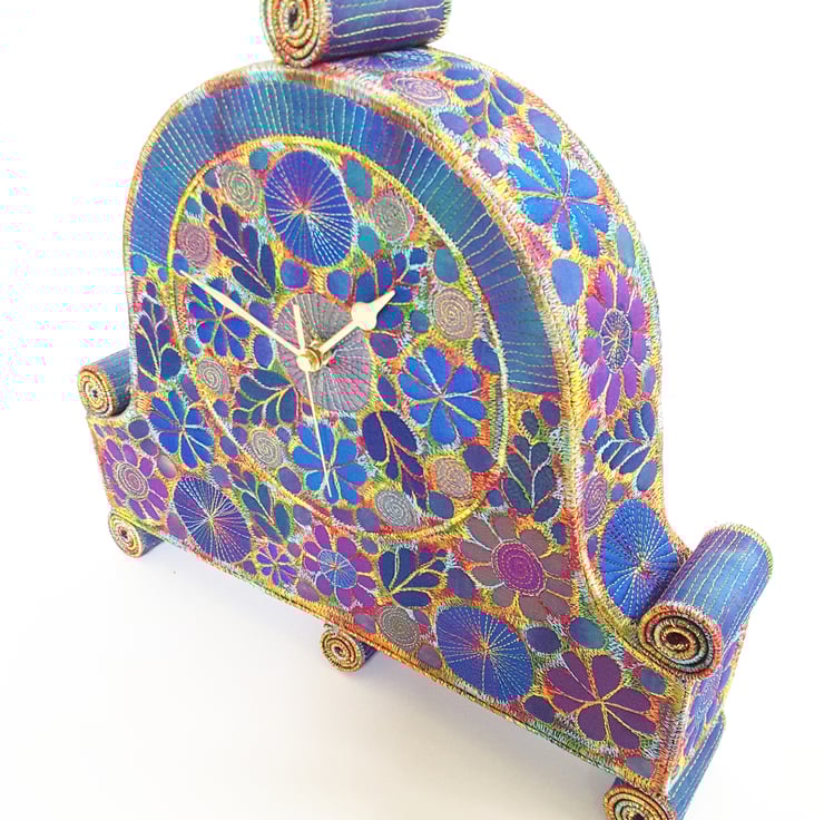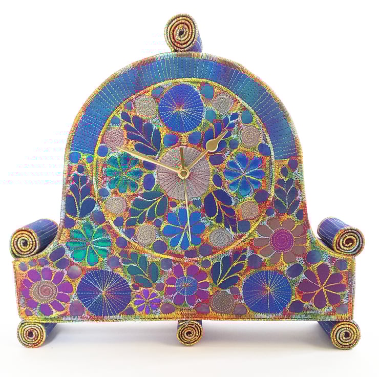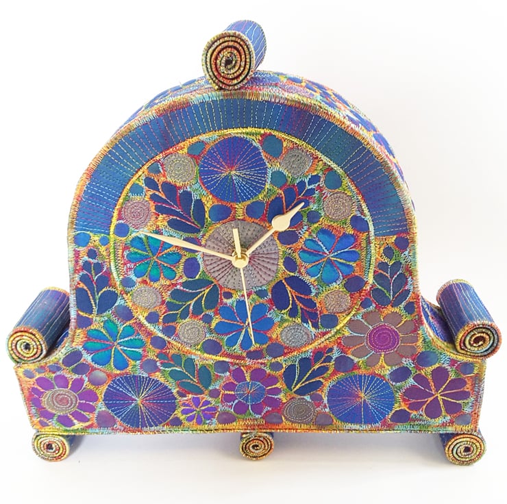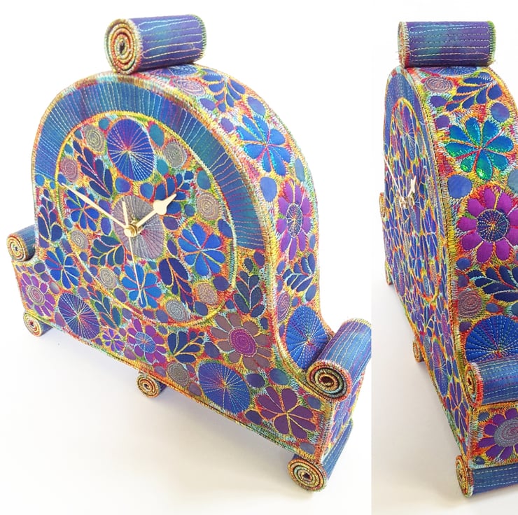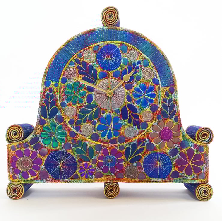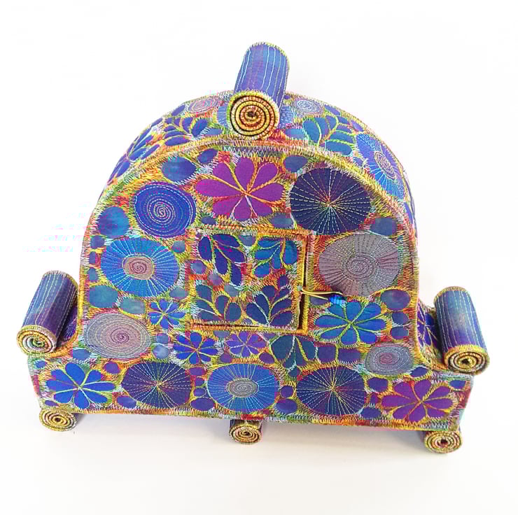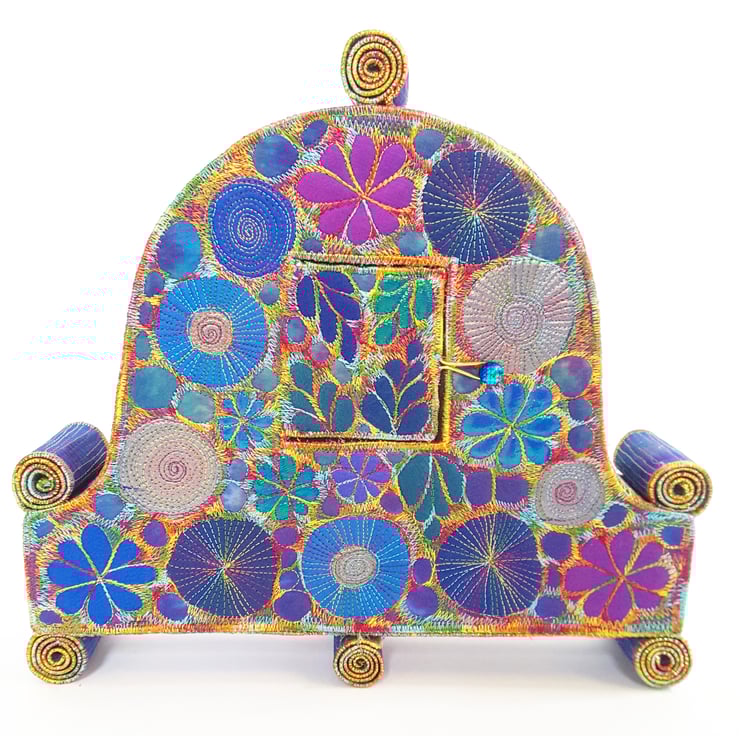 Made from layers of fabric including hand dyed Egyptian cotton and silk fabrics using the free machine embroidery style of sewing.