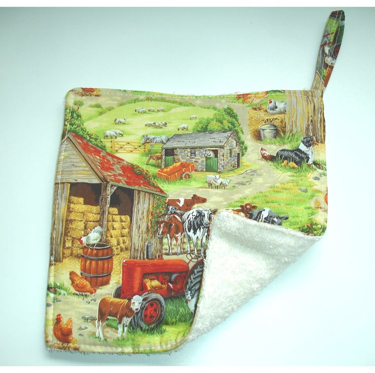 A Pot Holder backed with a cream towel fabric - useful for mopping up around the kitchen,