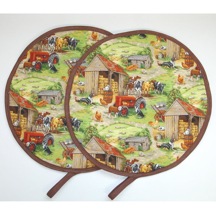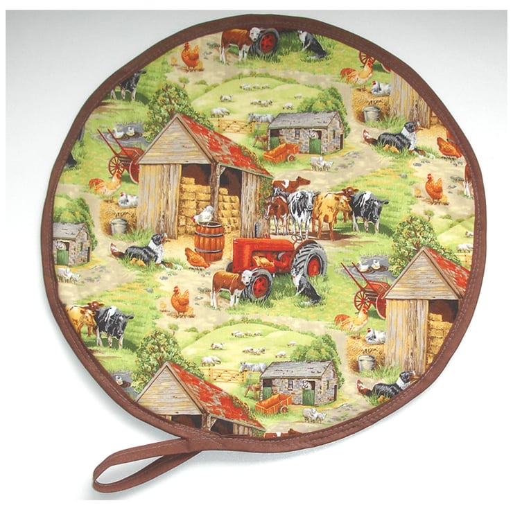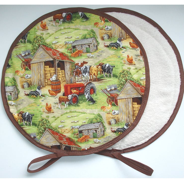 This mat has three layers - Facing cotton fabric, a layer of padding and a layer of towelling - Making it also suitable for mopping up and pot-grabbing!