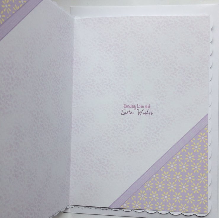 The card has a luxury full colour insert on the inside that matches the design on the front. The sentiment on the inside says "Sending Love and Easter Wishes" and there is plenty of room for you to write your own special message.