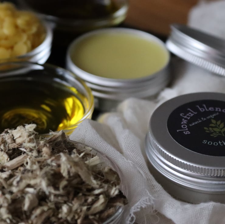 it came together from a combination of distress with a worsening skin condition, and a passion for plant life and natural ingredients. after a slow process of trying various oils and herbs on different areas of skin to see which was the most effective. this is the result. with an aim to create something softening and moisturising with a barrier to help retain moisture, which would hopefully give the skin a better chance at healing, without causing irritation. while this is in no way a cure for eczema, it has soothed and softened the redness, dryness, and irritation i was experiencing. i think lessening the distress these skin conditions can cause, goes a long way towards enabling the skin to begin repairing itself.