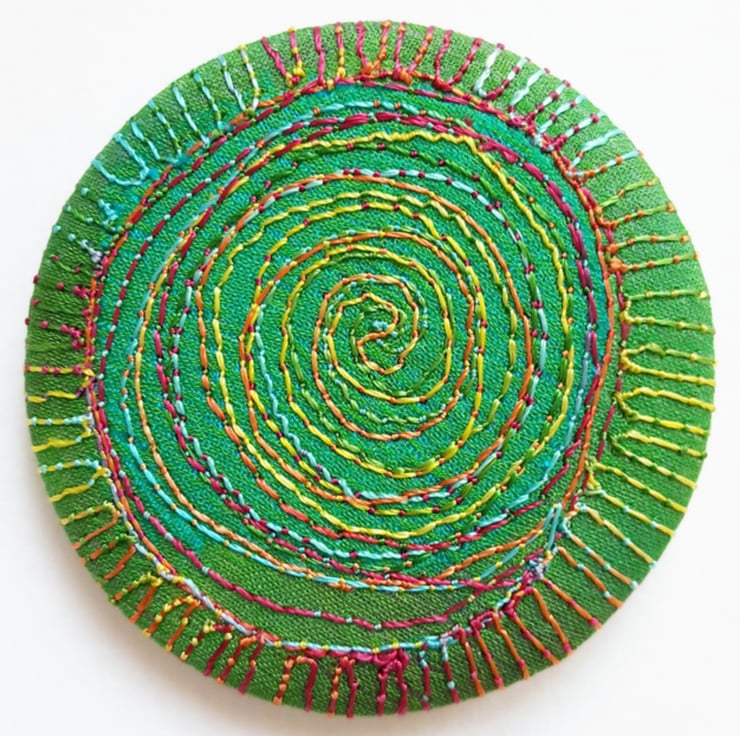 This is a handmade machine stitched fabric badge