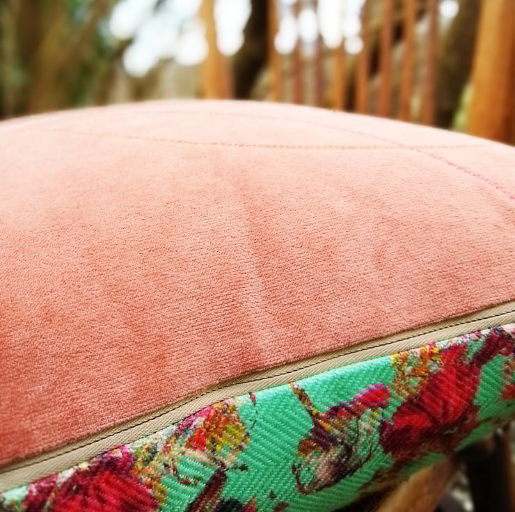 I use up-cycled velvet curtain for the back, so any small imperfections add to the vintage style of this cushion