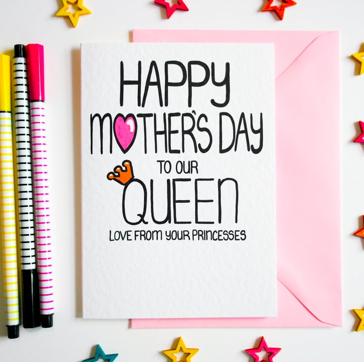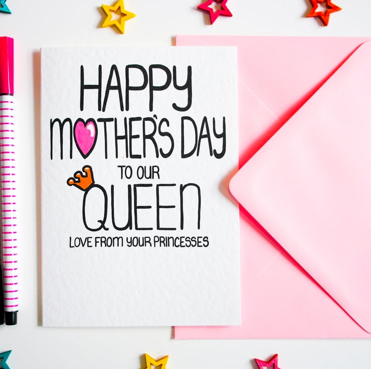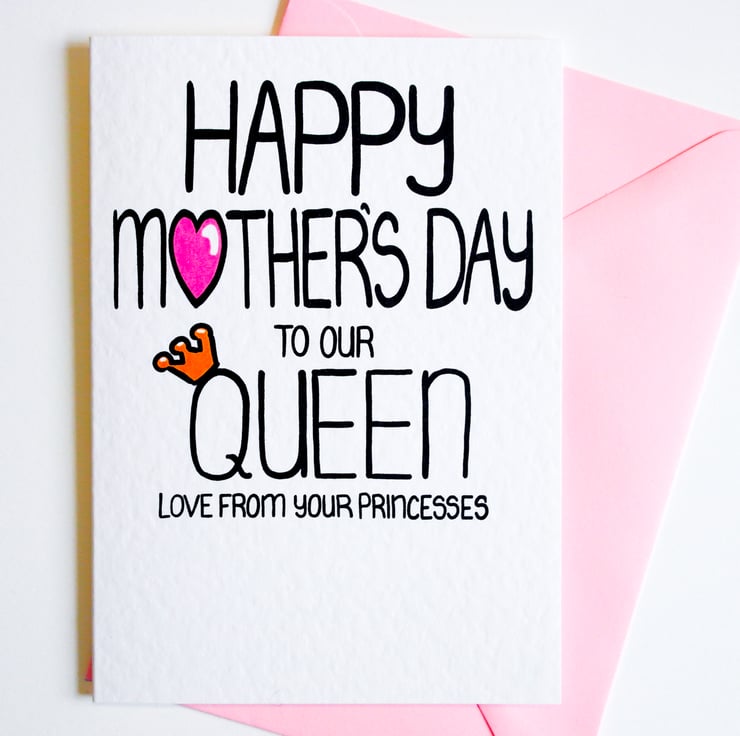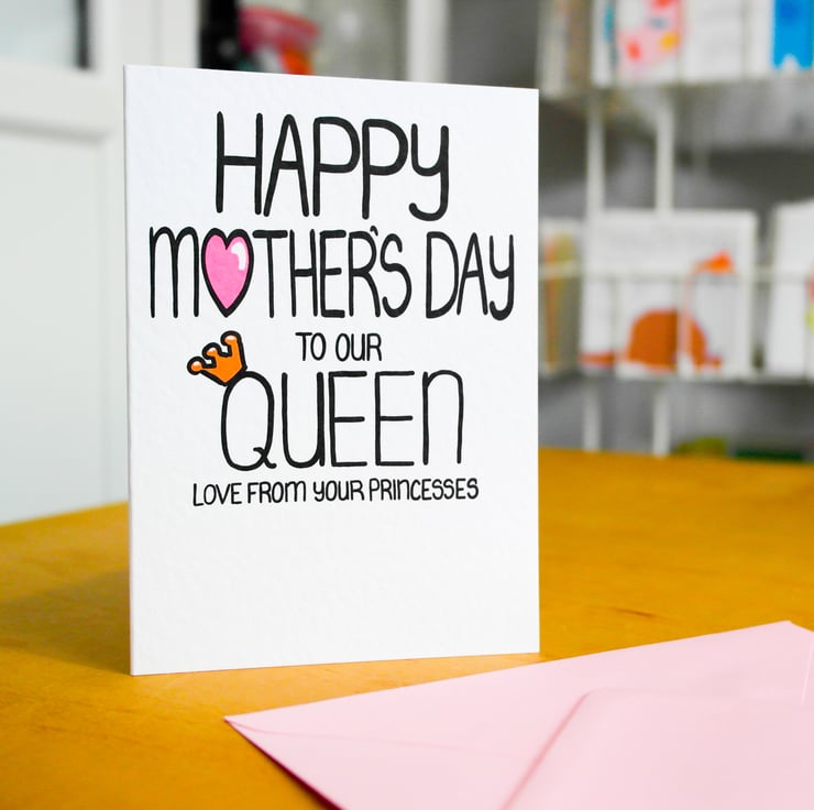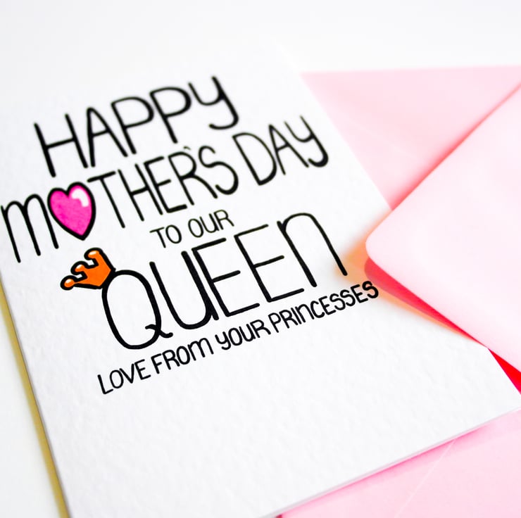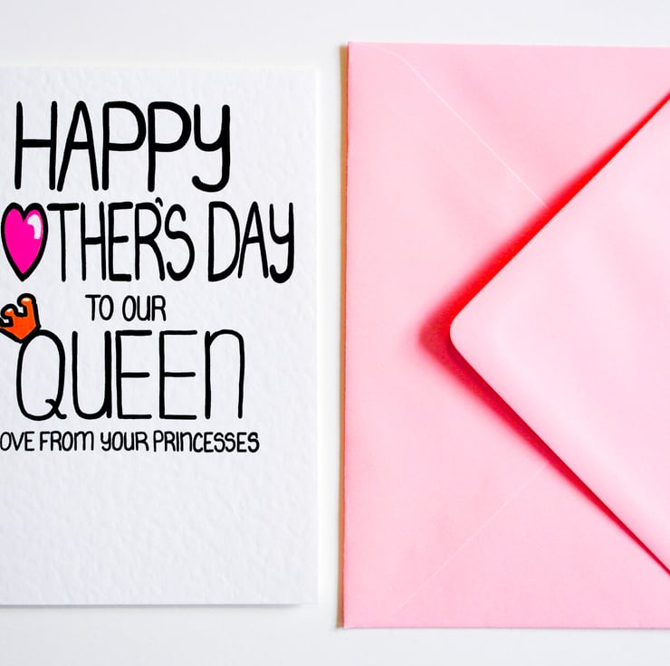 Greeting on front:HAPPY MOTHER'S DAY TO OUR QUEEN LOVE FROM YOUR PRINCESSES