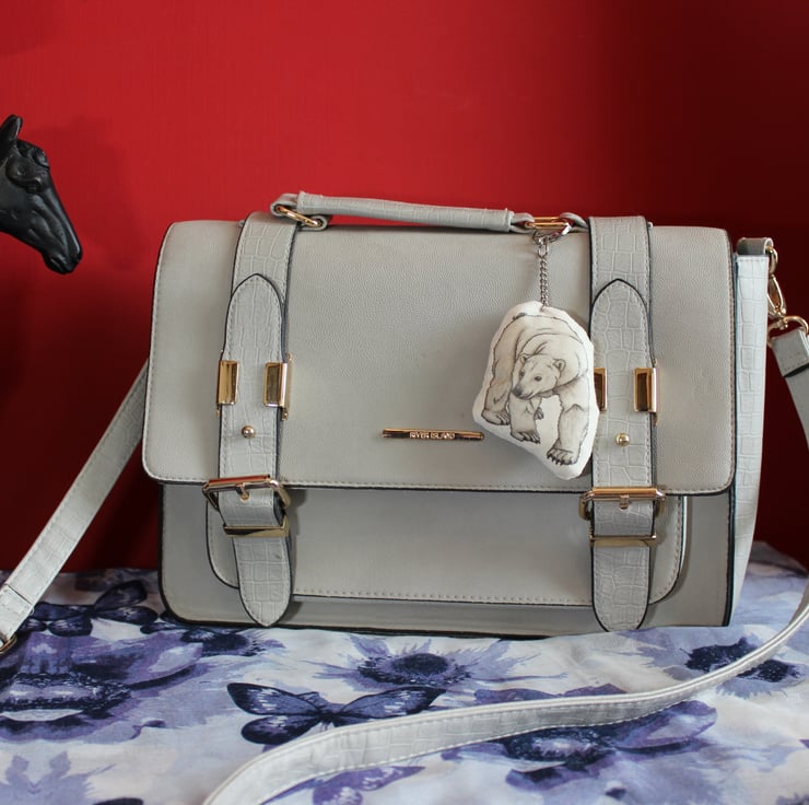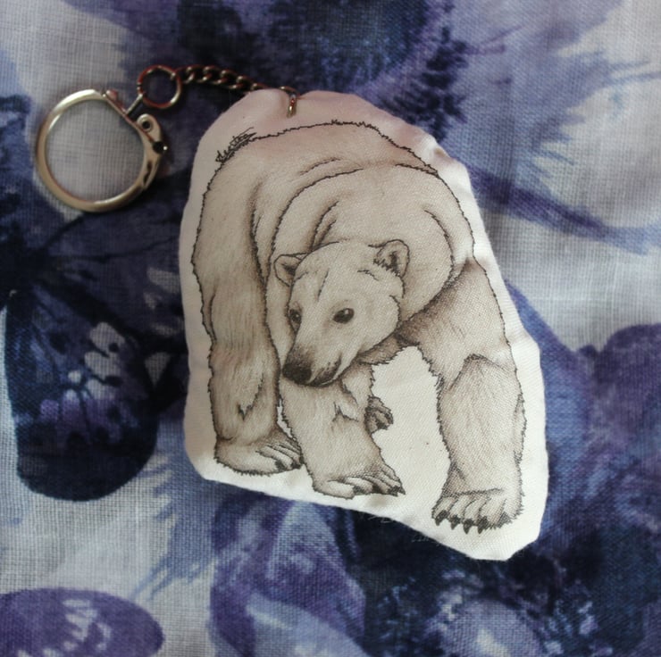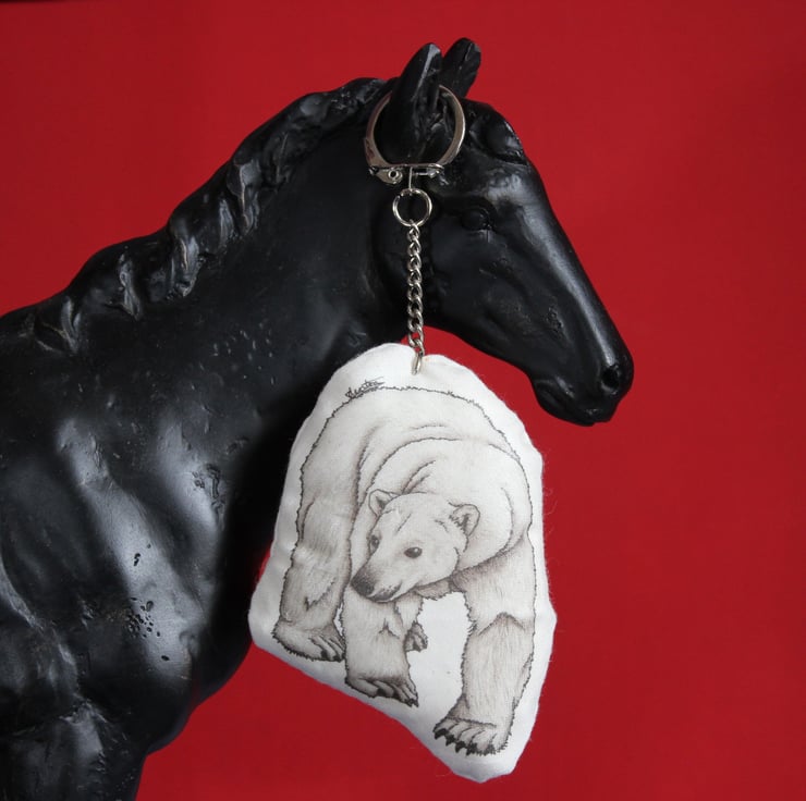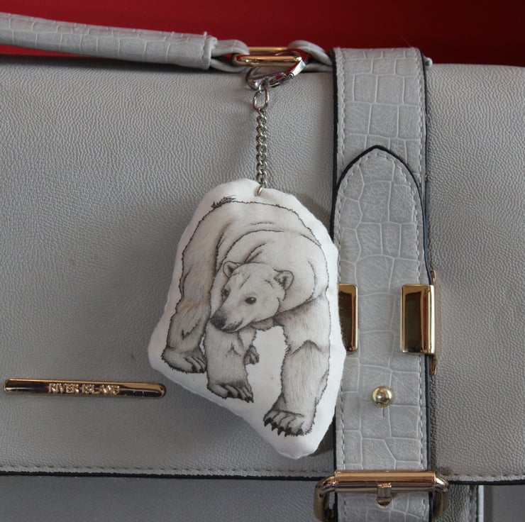 Featuring my very own Polar Bear drawing, this handmade plush bag charm has a metal lever keychain and is great for showing off your love of bears. Item may vary slightly from photos as they are each handmade.