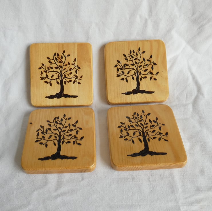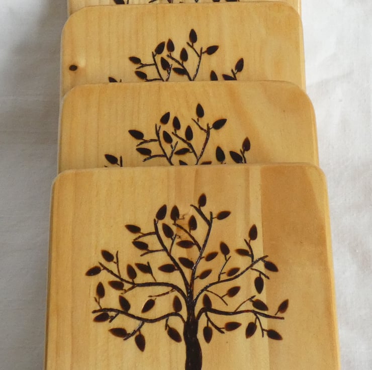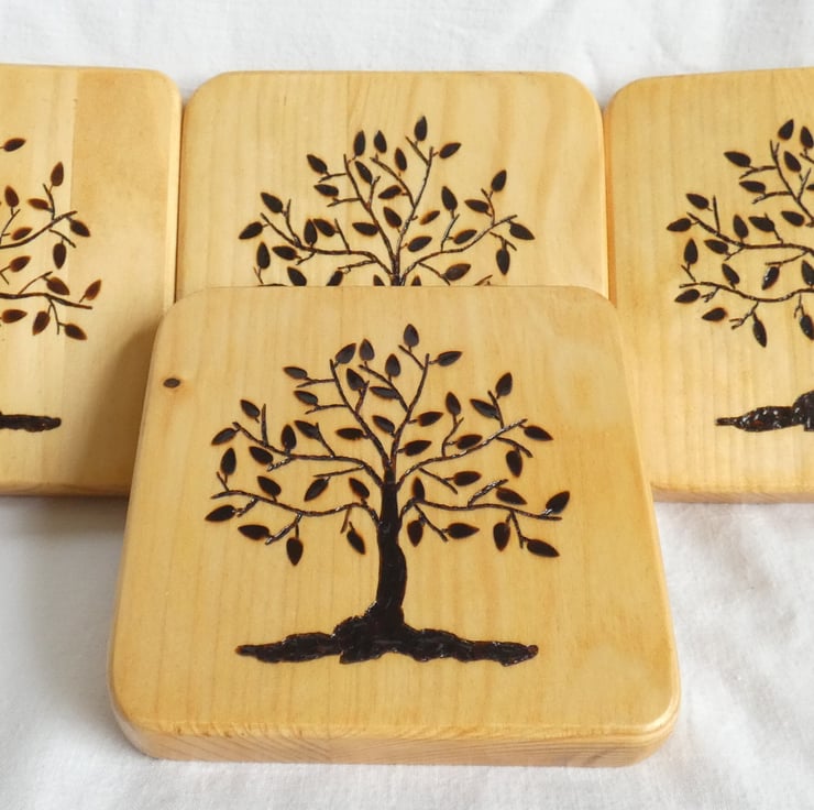 This beautiful set of 4 rustic coasters has been upcycled from reclaimed wood and will brighten up any table. Each coaster has a tree of life symbol pyrographed on it. They would make a perfect gift for a number of occasions such as a housewarming, 5th Wedding Anniversary or as a Mothers Day gift.