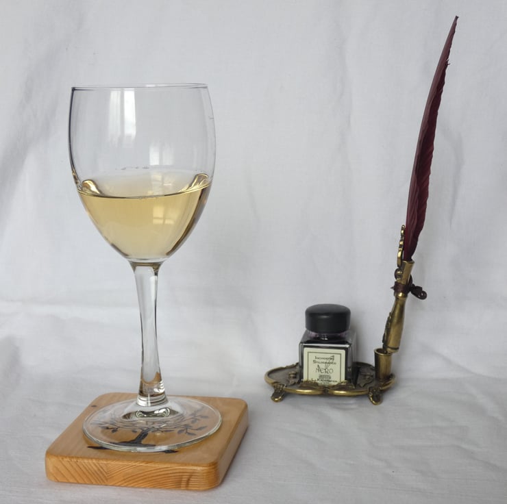 To make these coasters I firstly glued several pieces of wood together and when dry cut them to suitable sizes. I then sanded them by hand to produce a smooth finish. Each coaster was slightly chamfered. A template was applied to the wood and transferred using carbon paper. The image was then completed by using pyrography. The coasters were coated in natural Shellac and finished with coats of lacquer, which is heat and water resistant. Each coaster has 4 small plastic buffer pads, on the back to prevent them from scratching surfaces.