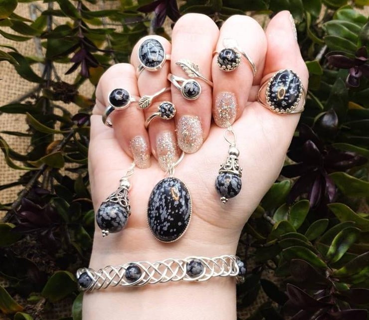 Snowflake Obsidian is associated with the starsign Virgo and is said to be a calming and soothing stone. It is thought to teach you to value mistakes as well as successes.