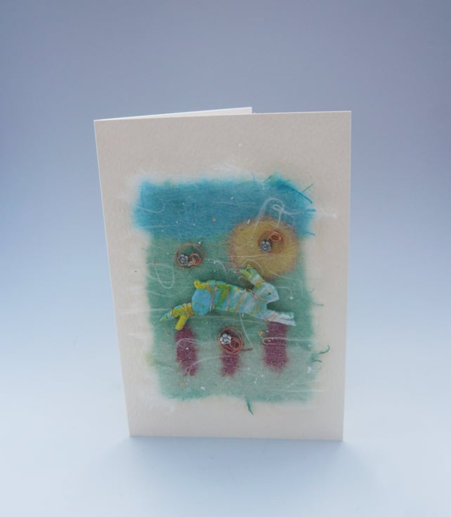 I make my motifs using traditional salt dough recipe. Each motif is carefully varnished to protect and enhance the colours. I use handmade papers for texture, beads and copper wire as embellishments. The card is A6 105mm x 148mm in size and made of ivory coloured card. Inside is left blank for you to add your own message and comes with a brown kraft envelope. Your card will be sent by 1st class post in a clear bag, wrapped in bubble wrap in a reusable cardboard box. Each card is unique.