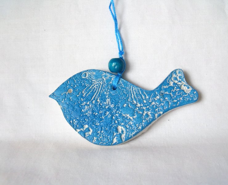 Made using air dried clay which I impressed with a vintage doily into the shape.