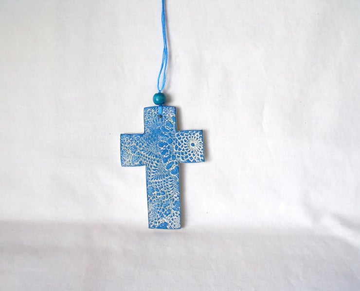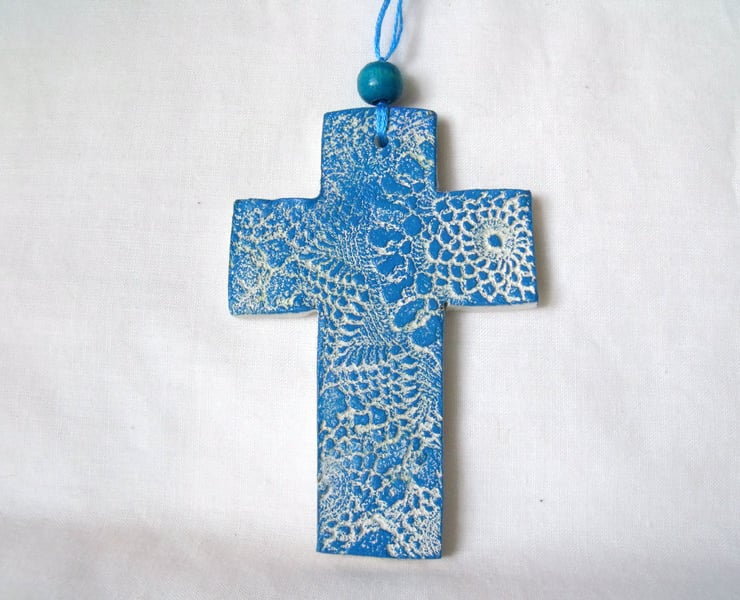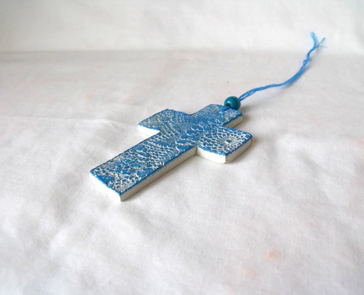 Made using air dried clay which I impressed with a vintage doily into the shape.