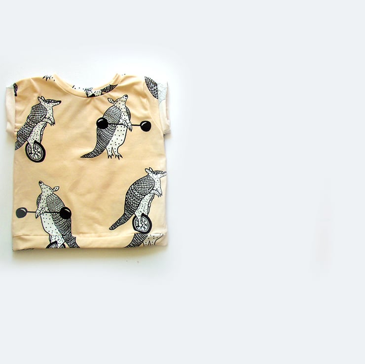 Beautifully soft organic jersey t shirts perfect for your new addition. This lovely t shirt is covered in armadillos and will look great with all your little ones outfits!