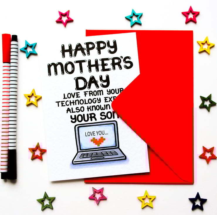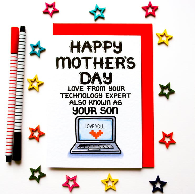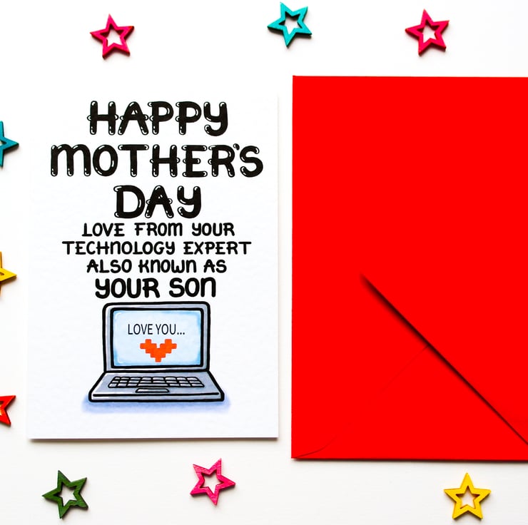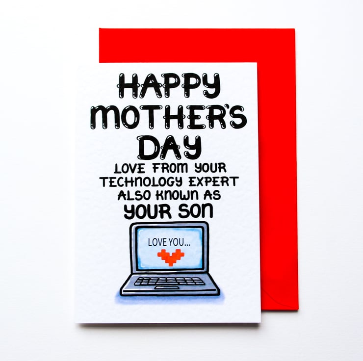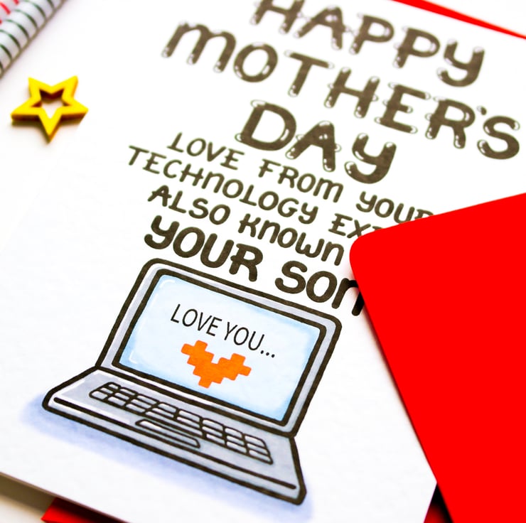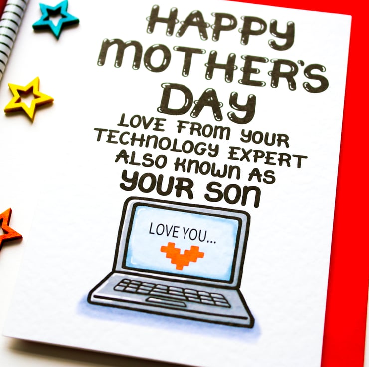 Greeting on front:HAPPY MOTHER'S DAY LOVE FROM YOUR TECHNOLOGY EXPERT ALSO KNOWN AS YOUR SON