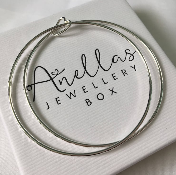 This bangle set is made from 1.5mm thick sterling silver wire and measure approximately 6.5 cm in diameter (21 cm circumference) as standard but is also available in a smaller (19 cm) size.