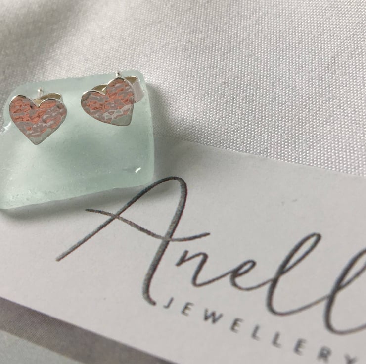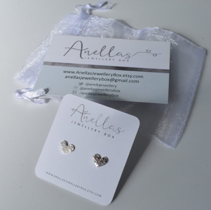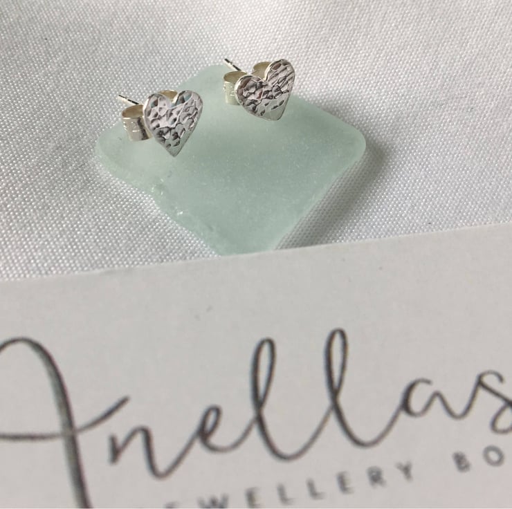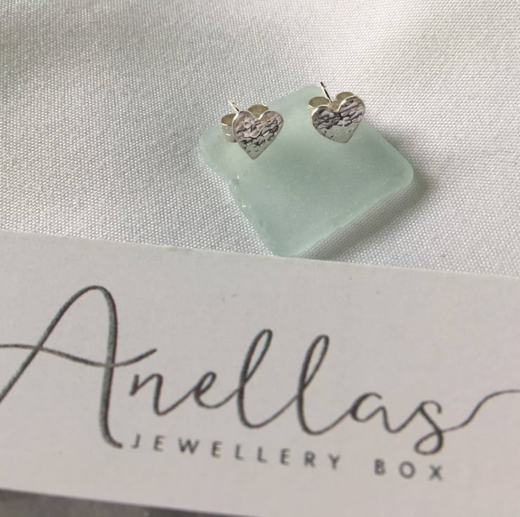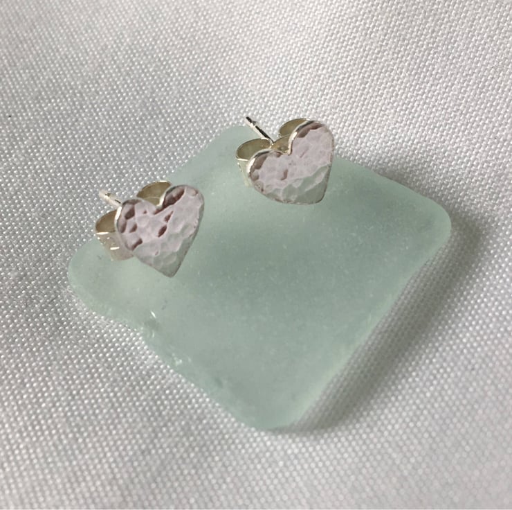 Sterling silver heart stud earrings which have been hammered lightly to give a textured finish.