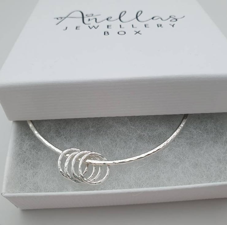 This bangle would make a lovely gift as the rings could represent something special. You can select how many rings you would like on your bangle when making your purchase.