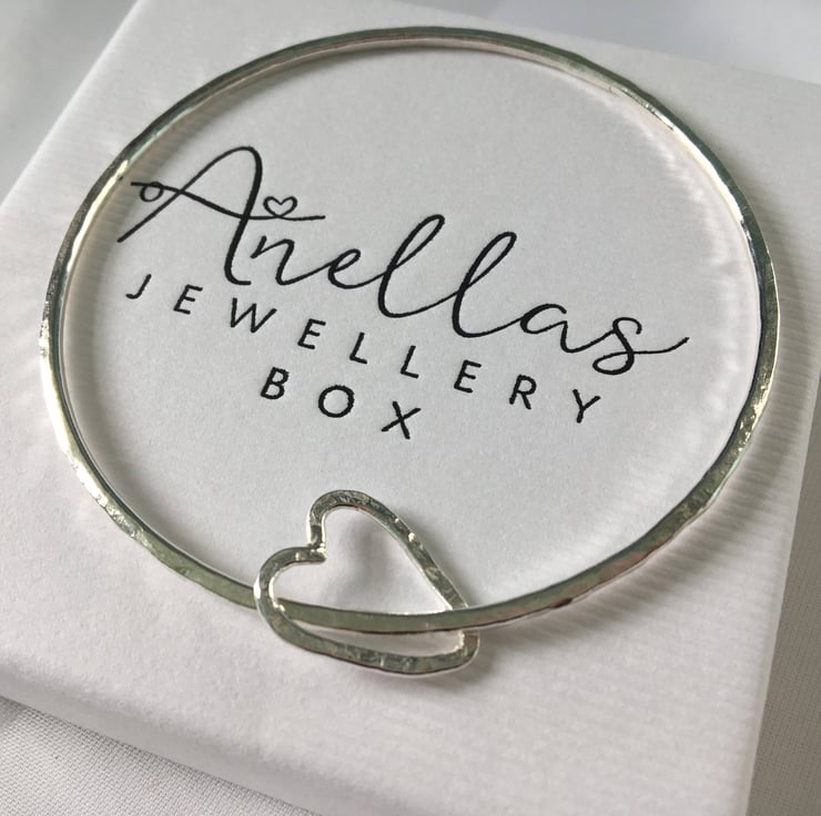 This is a simple everyday bangle that looks gorgeous on and is a must have for any heart lovers out there. The sterling silver wire used to make this bangle is 2 mm thick and so is thick enough to look great on its own or when worn with other bangles.