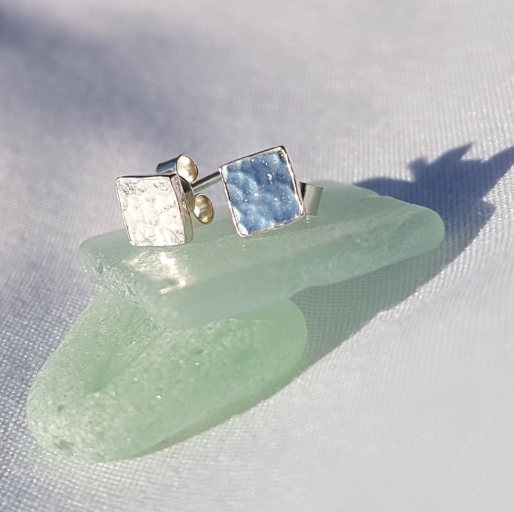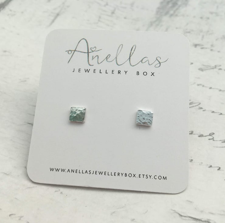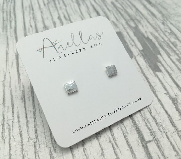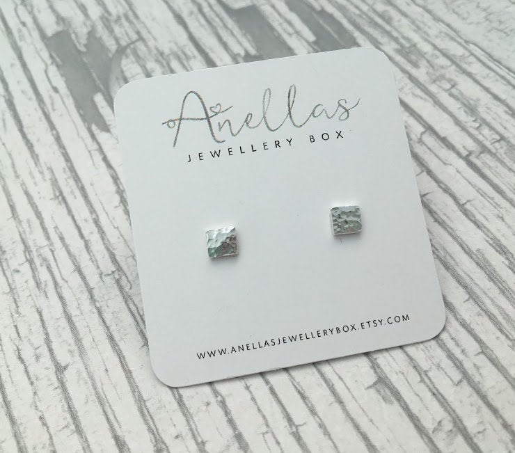 A gorgeous pair of small square stud earrings which have been given a dimpled texture finish. These tiny stud earrings have been purposefully designed to be small and minimalistic to ensure that they are perfect for every day wear.