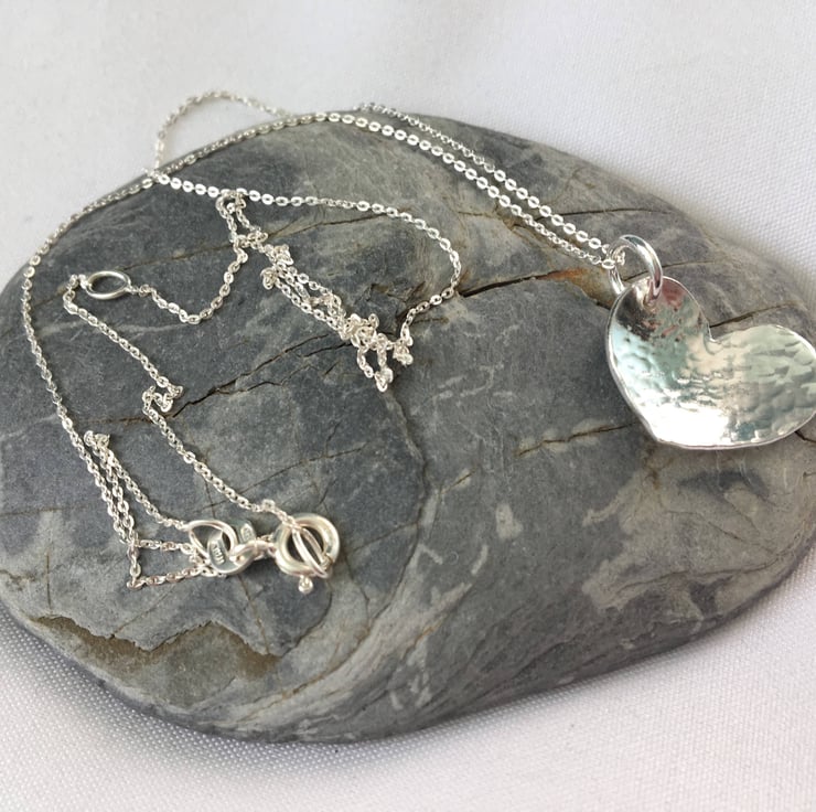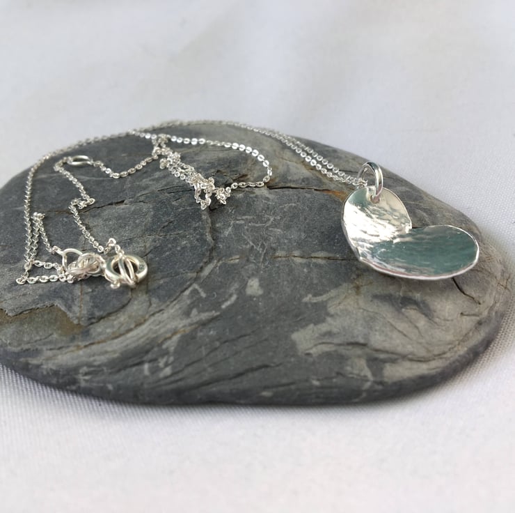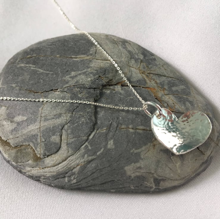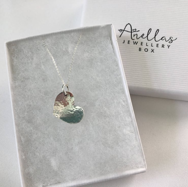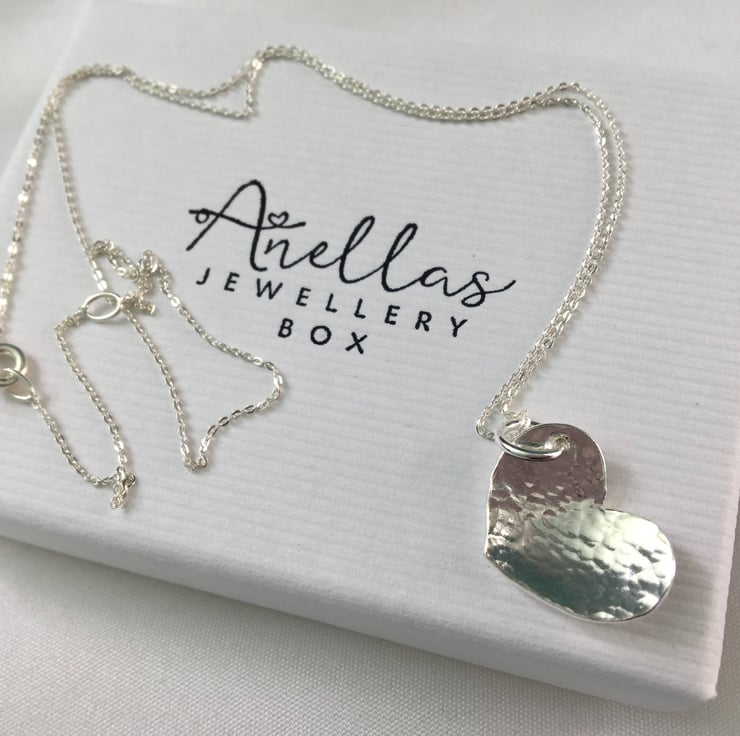 A simple but gorgeous Sterling Silver Heart Necklace which would make a perfect gift for yourself or loved one. This heart pendant has been given a slightly domed effect and has then been hammered lightly to give a textured dimple finish. This pendant is perfect for any heart lovers out there.