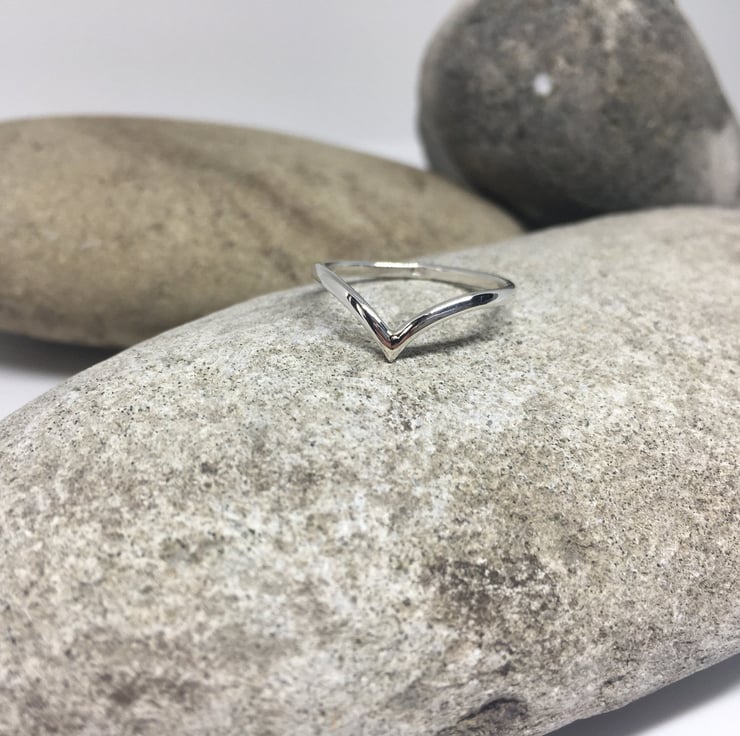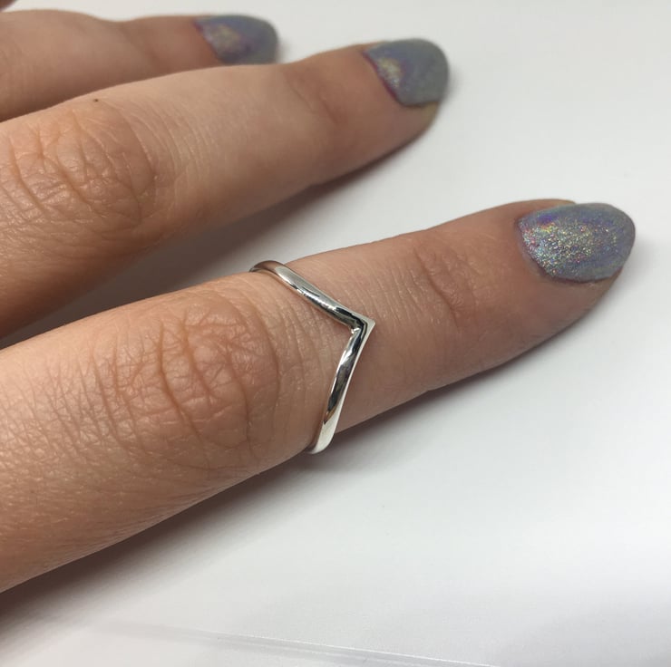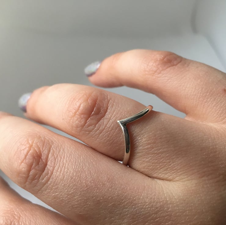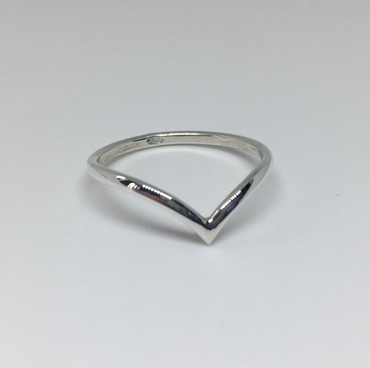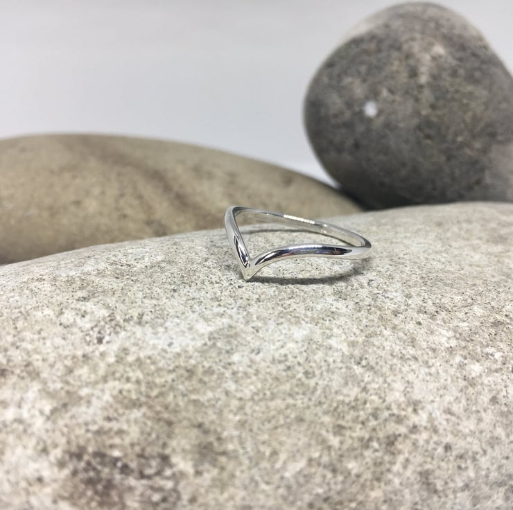 A wishbone wedding ringchevron stacking ring finished with a high polish.