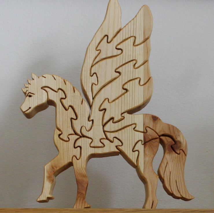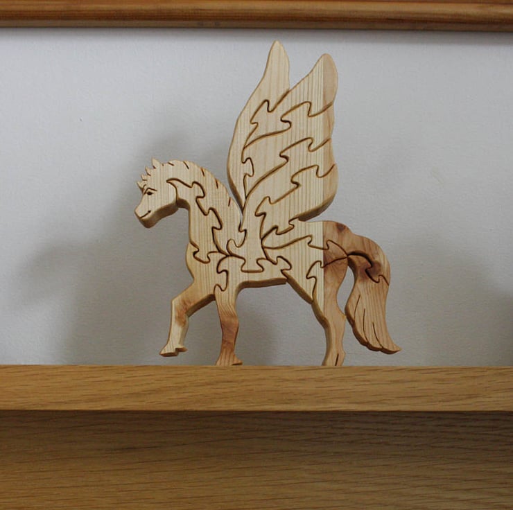 This unusual wooden Pegasus Jigsaw Puzzle, has been upcycled from reclaimed wood. The mythological horse would make a lovely table centerpiece or ornament. This would make a perfect gift for a number of occasions such as a housewarming or birthday, Christmas or even as a gift for brother.