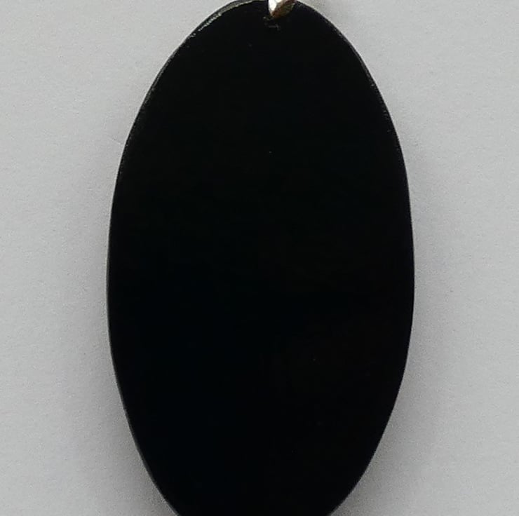 The pendant is approximately 6.5 cm in height, 3.5 cm in width at its widest point and the depth is approximately 0.5 cm.