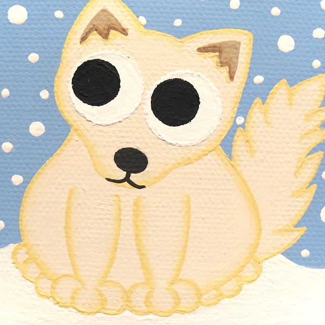 This original cartoon fox art is painted in acrylics on a 7.5cm (3") square canvas and is signed and dated on the back.