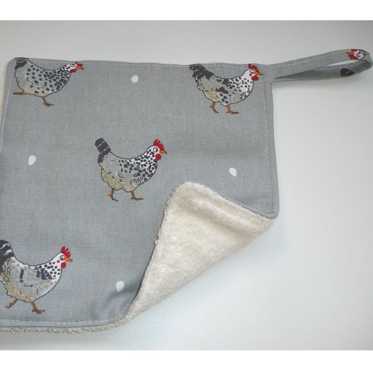 A Pot Holder backed with a cream towel fabric - useful for mopping up around the kitchen.