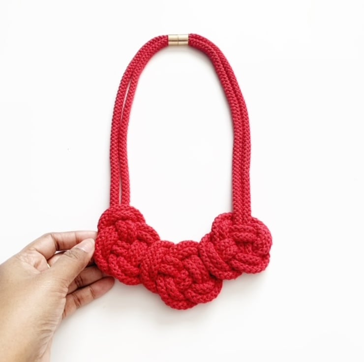 A beautiful handmade necklace. It is made using soft cotton rope. It has magnetic closure to give a contemporary look. This necklace is also hand washable. I many colour options for this necklace. Bright yellow displayed here which looks amazing with any summer dresses.