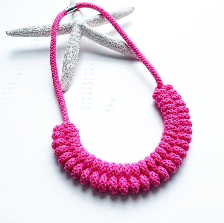 I made this beautiful necklace using soft cotton rope. It's around 50 cm in length. Can be made longer. It has magnetic lockable clasps to give a beautiful finish. This necklace is also hand washable.