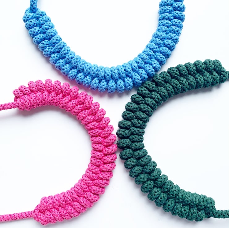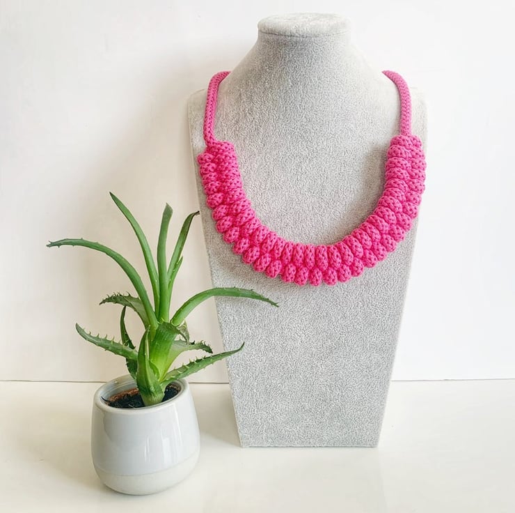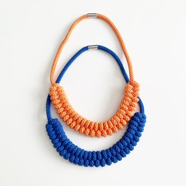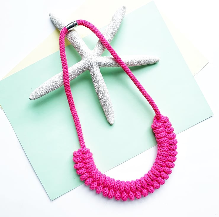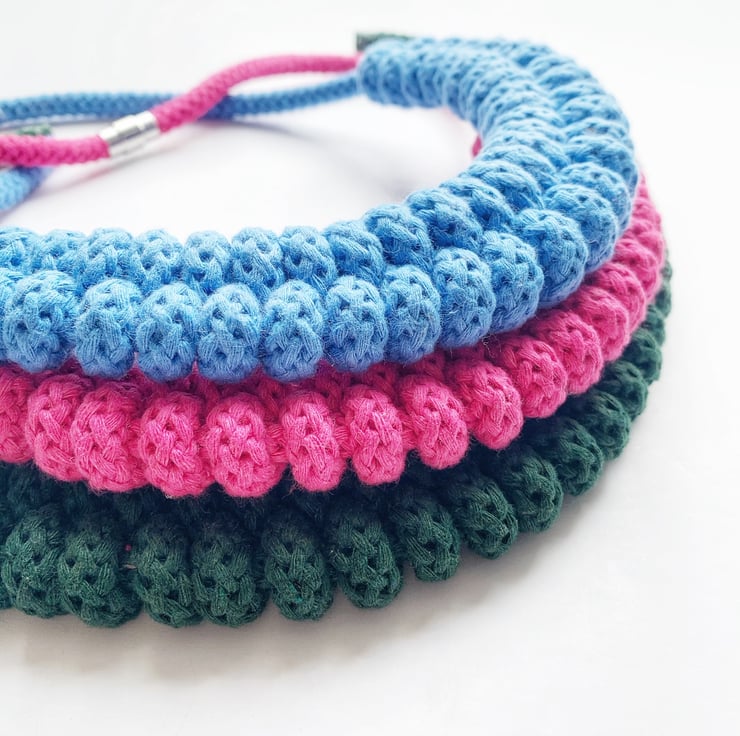 I made this beautiful necklace using soft cotton rope. It's around 50 cm in length. Can be made longer. It has magnetic lockable clasps to give a beautiful finish. This necklace is also hand washable.