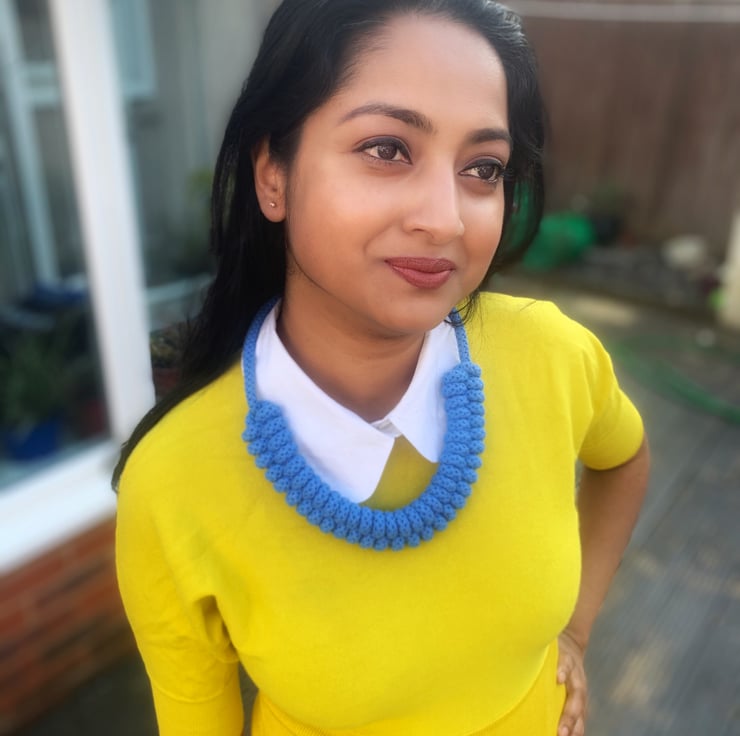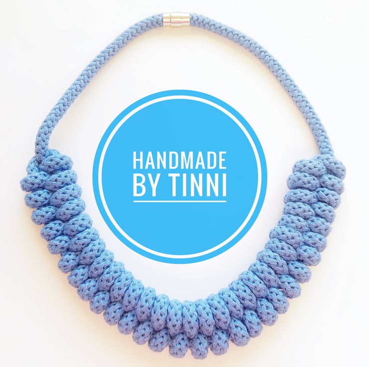 A combination of statement and minimalist styles. Instantly dress up any outfit by adding this striking piece of statement jewelry. Easy to wear and combine with any casual or elegant outfit. Comfortable necklace made from ecological and soft cotton. It is made from 100% cotton yarn and does not contain any harmful substances that pose a risk to the environment or human health.
