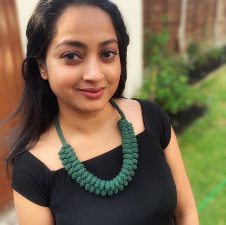 Beautiful handmade cotton rope necklace, made with crocheting technique.