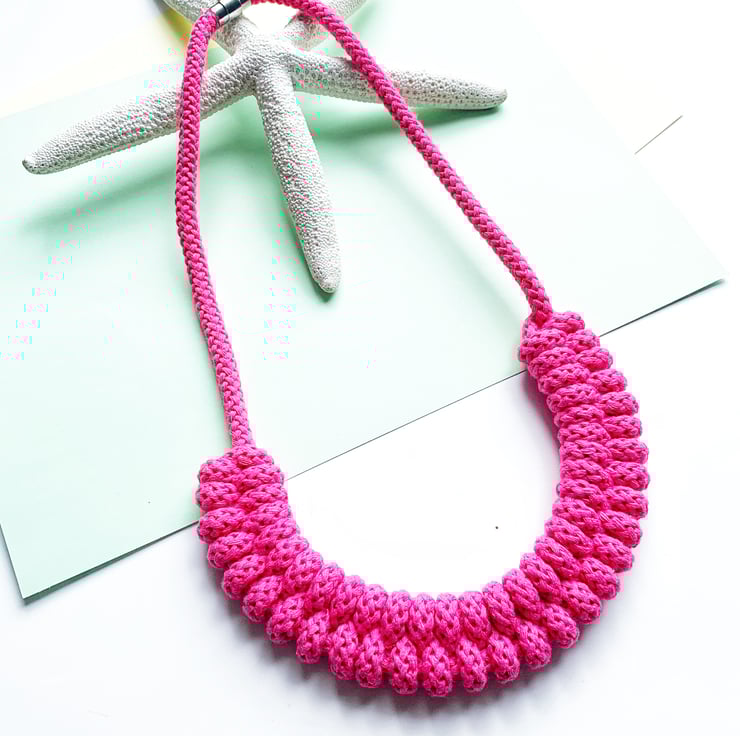 Hot Pink necklace, Knotted statement necklace, Sustainable boho necklace
